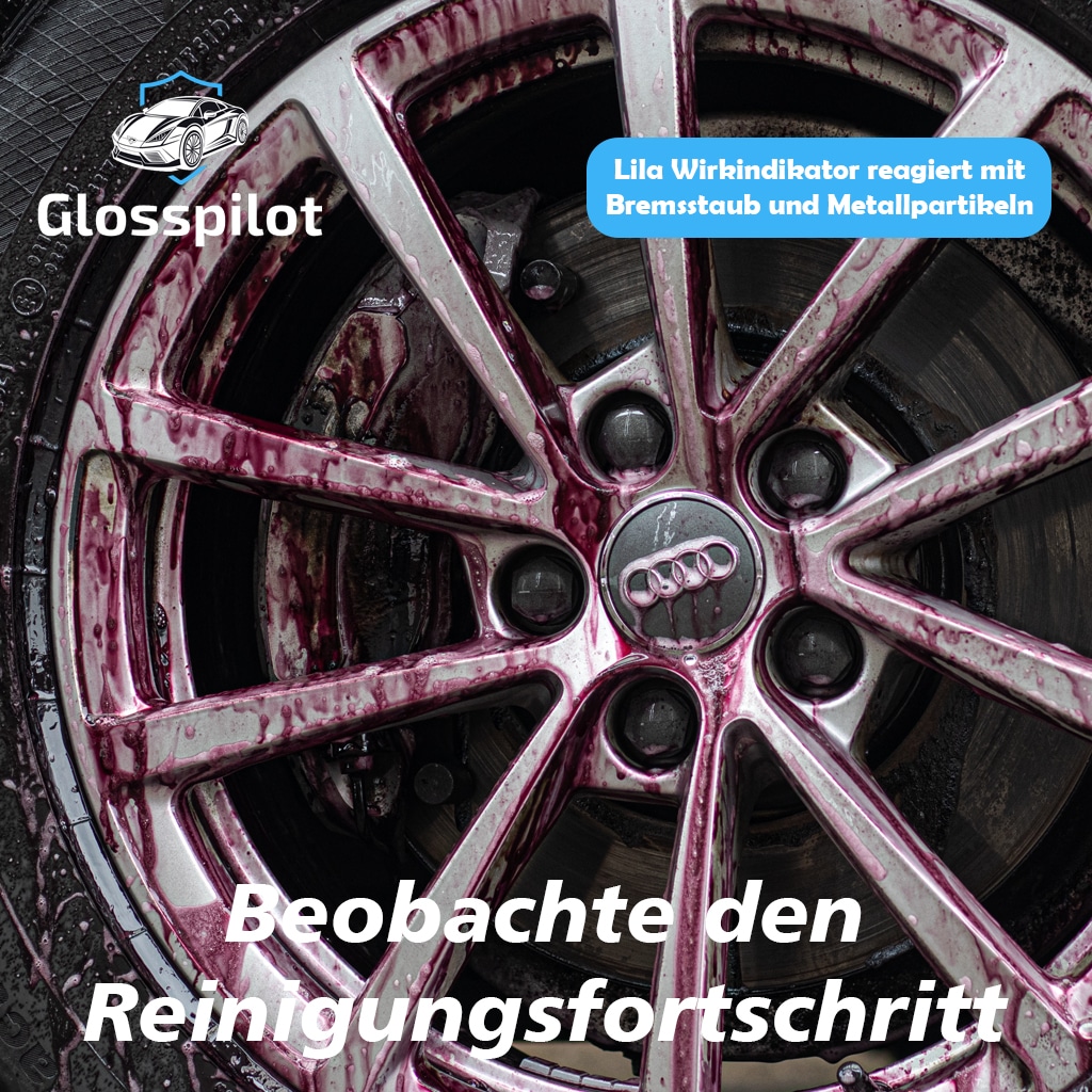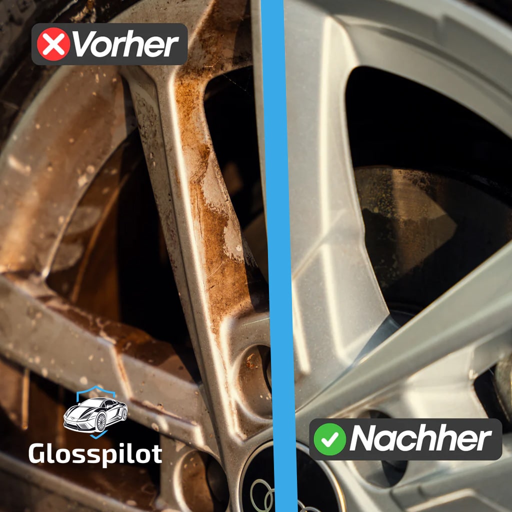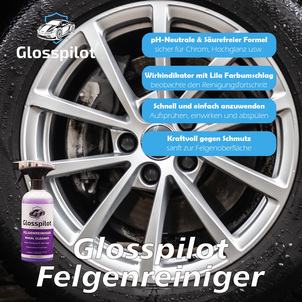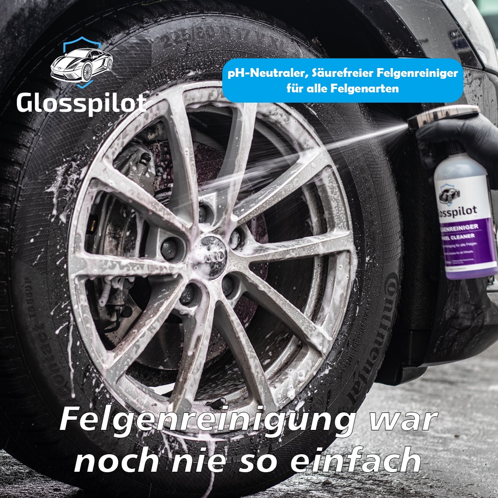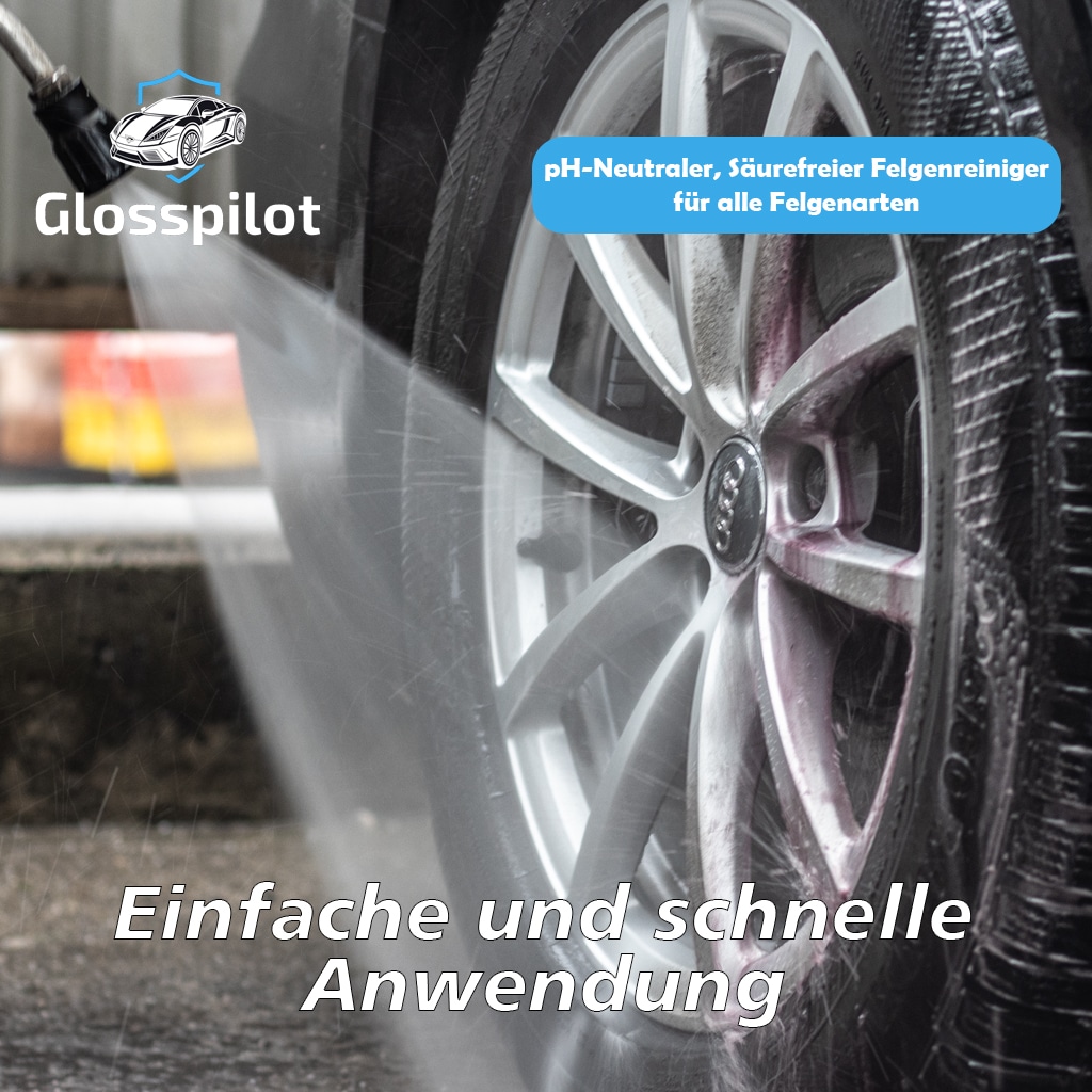Glosspilot Felgenreiniger ist dein neuer Standard für kompromisslose Felgenreinigung. Die hochwirksame, säurefreie und pH-neutrale Formel entfernt selbst hartnäckigen Bremsstaub, eingebrannten Schmutz sowie Metallpartikel – dabei absolut materialschonend und sicher für alle Felgentypen .