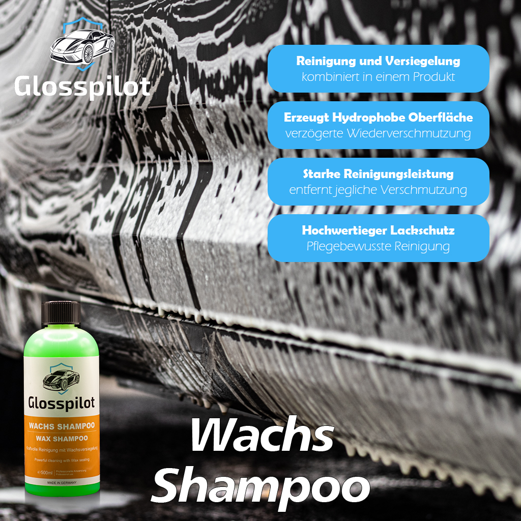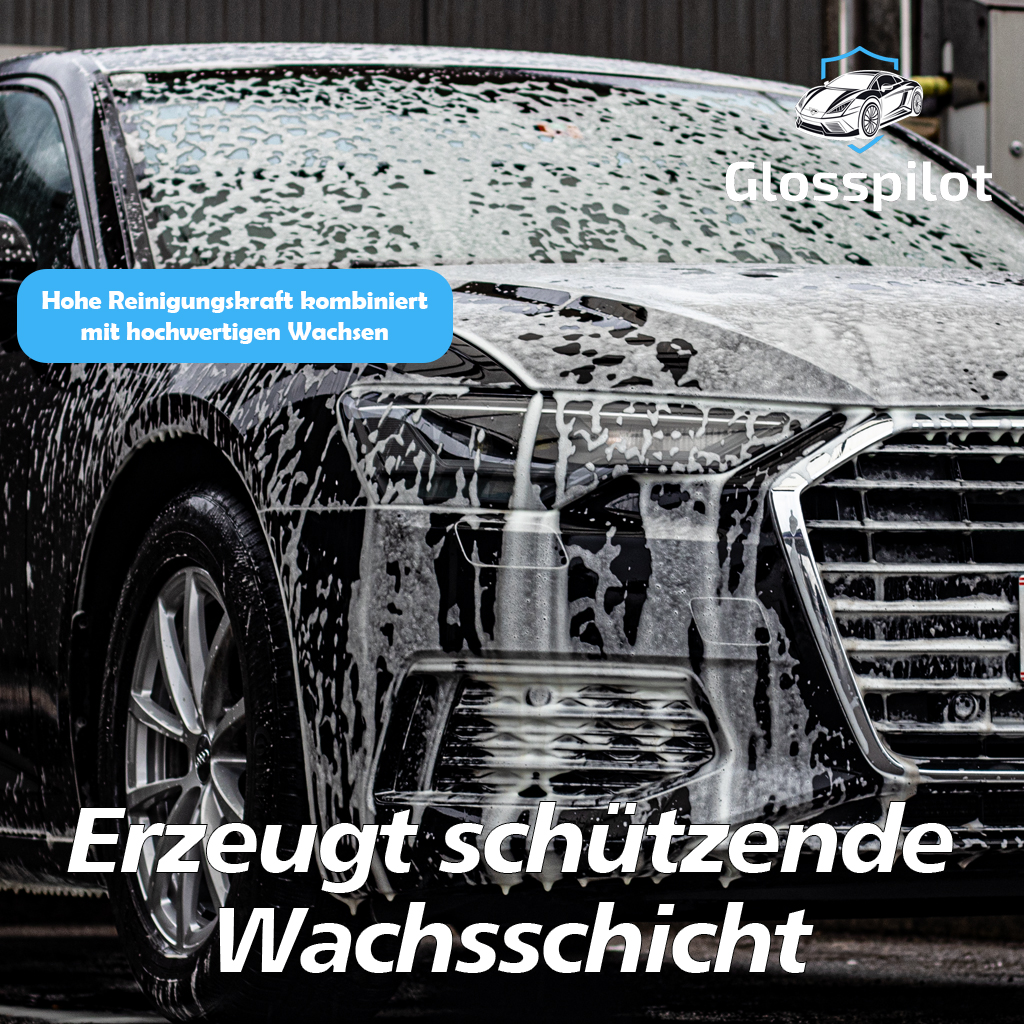 Glosspilot Wachs Shampoo vereint kraftvolle Reinigung mit hochwertigen Wachsbestandteilen – für eine glänzende, wasserabweisende Oberfläche bereits während der Wäsche.