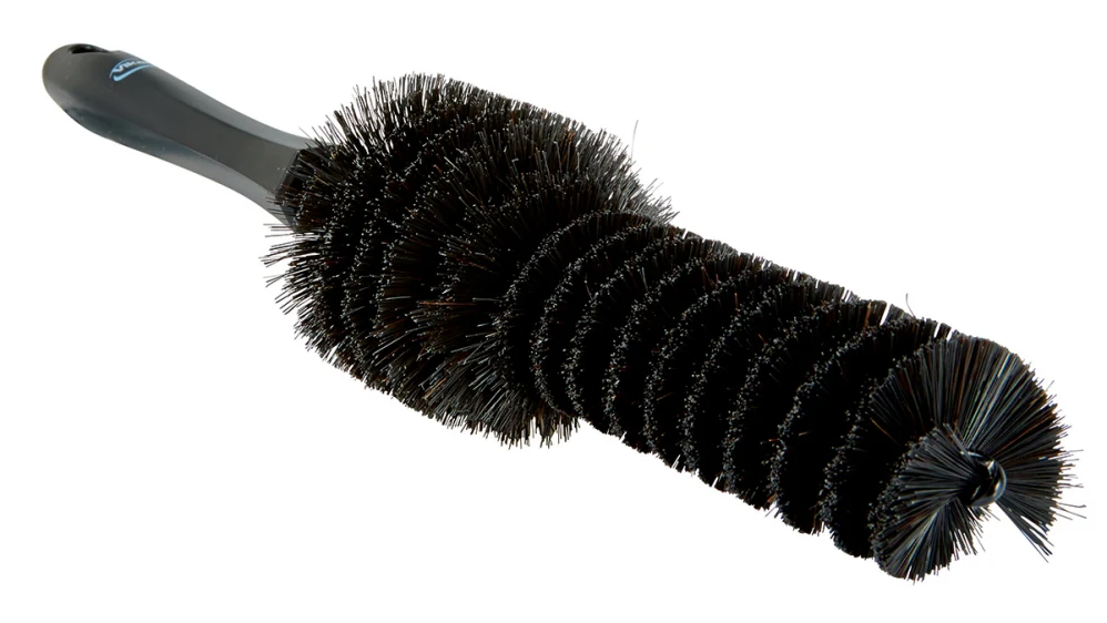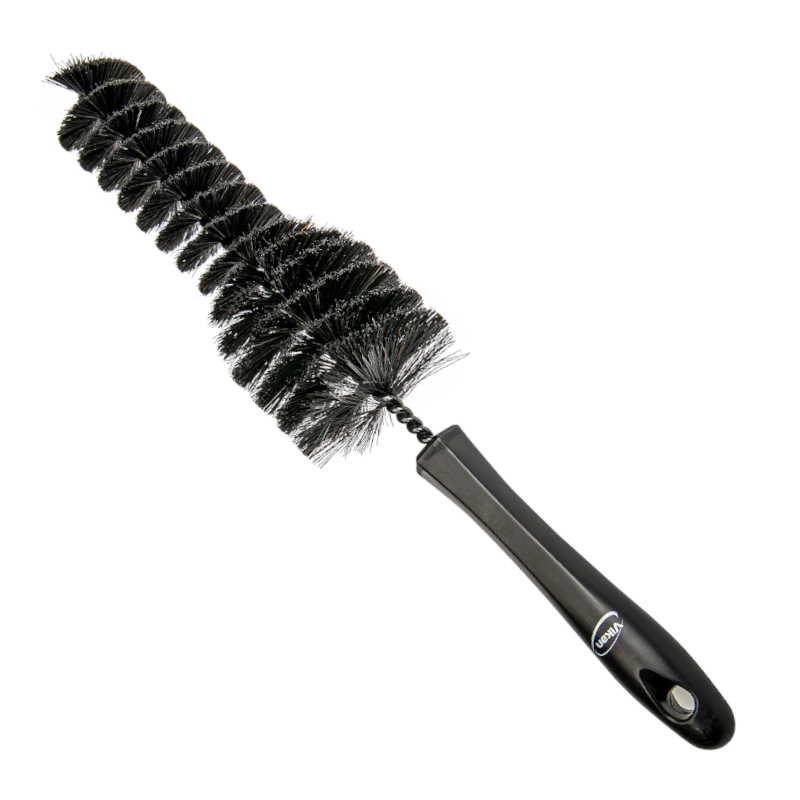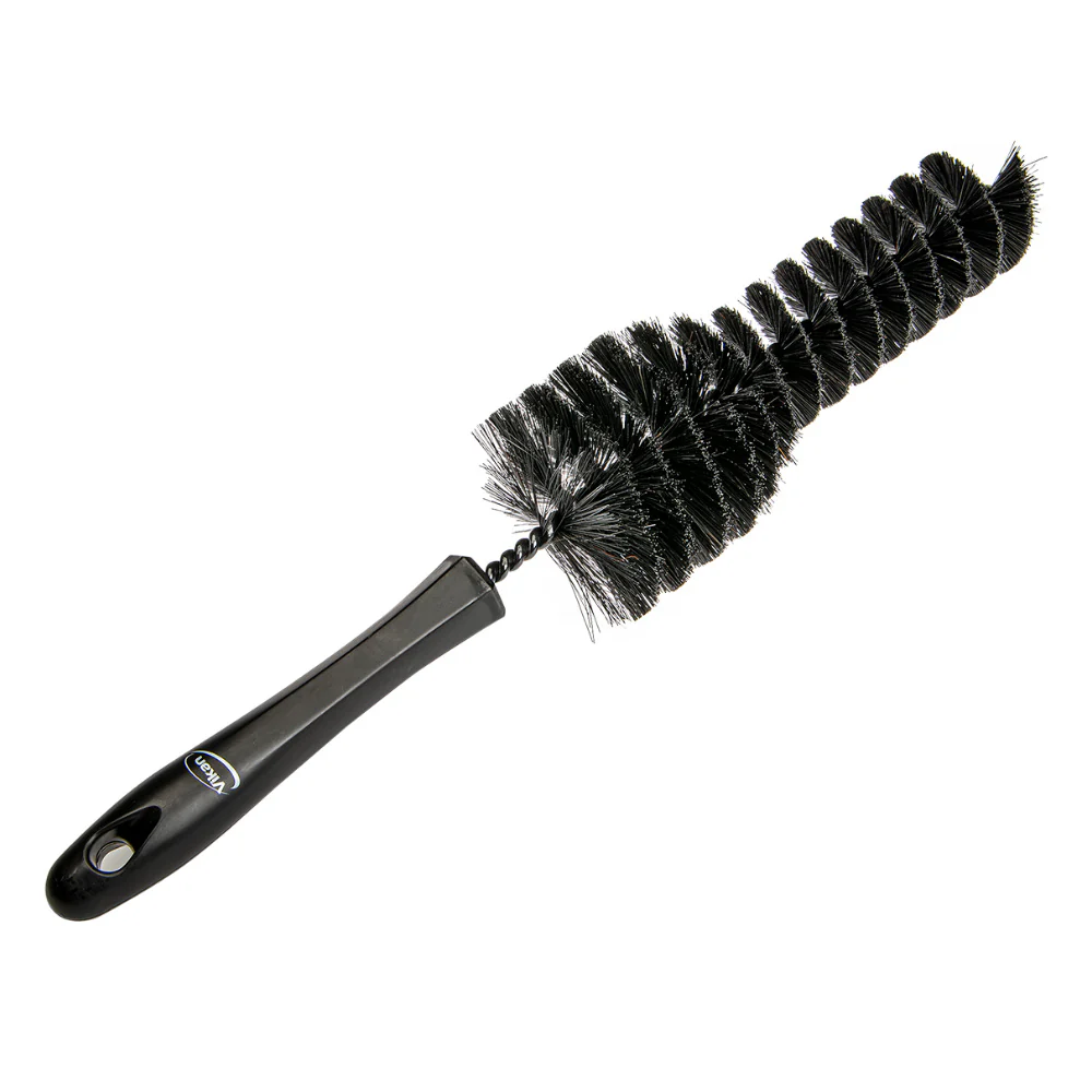 Flexible Vikan-Felgenbürste mit gummibelegtem Draht zum Schutz vor Kratzern. Durch ihre spezielle Form ist sie für alle Felgengeometrien geeignet.