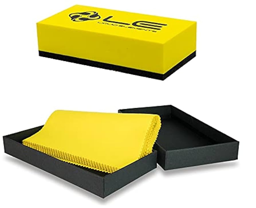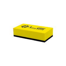 Liquid Elements – APPLIKATOR BLOCK GELB mit Logo 8x4x2cm ist ein zweilagiger Auftrageblock für verschiedene Anwendungen wie das Auftragen von Keramikversiegelungen.