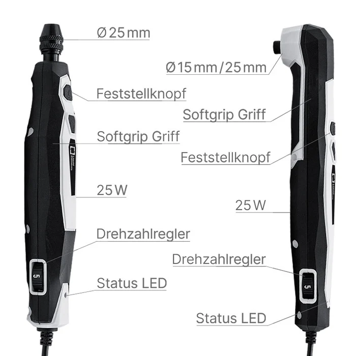 - Drehzaheinstelllbereich: 1.800 – 4.800 U/Min (stufenlos)