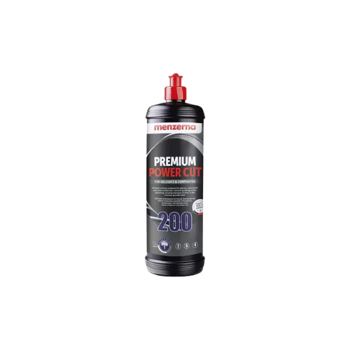 Menzerna Premium Power Cut 200 (1L) ist eine extrem leistungsstarke Heavy-Cut-Politur mit Cut 10/Gloss 6. Sie entfernt Schleifspuren bis P600–P800 und sorgt für hohen Glanz auf Gelcoat, GFK, CFK und Speziallacken.