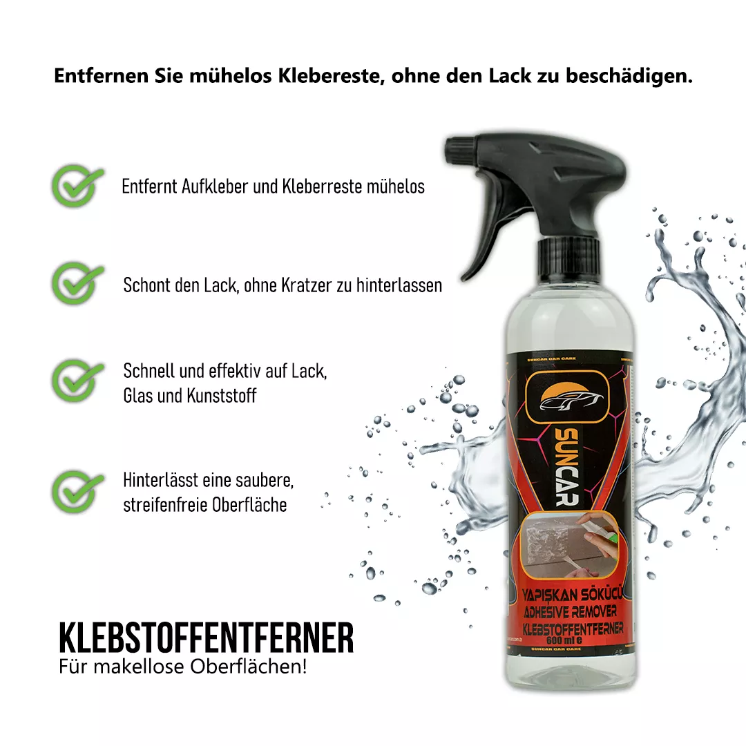 Der SunCar Klebstoffentferner ist ein unverzichtbares Hilfsmittel für alle, die ihr Fahrzeug von lästigen Kleberesten befreien möchten. Mit seiner leistungsstarken und zugleich schonenden Formel sorgt er dafür, dass Aufkleber Rückstände, Etikettenkleber und ähnliche Verschmutzungen mühelos entfernt werden können, ohne den Lack oder andere Oberflächen zu beschädigen.